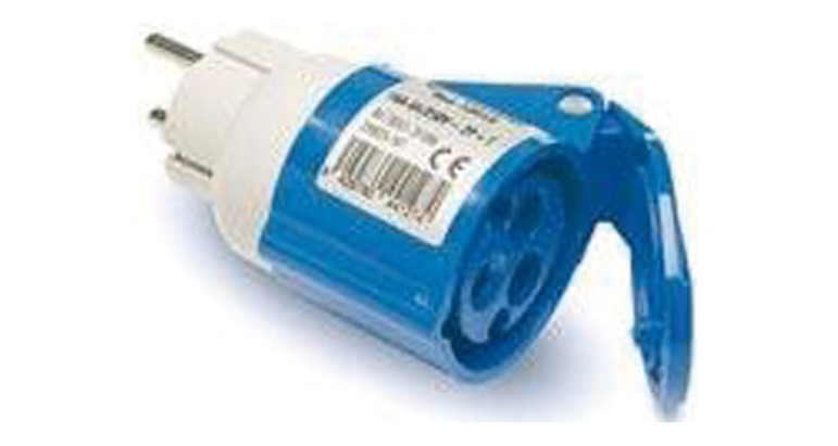 Adaptador Cetac 2P+T 16A hembra a clavija Schuko macho. Entrada: 2P + TTL. Salida: 2P + T. IP44