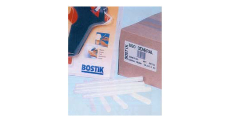 Adhesivo termofusible en barritas diseñadas para su aplicación con pistolas encoladoras. Para el pegado instantáneo de cartón, madera, piel, PVC plastificado, etc.