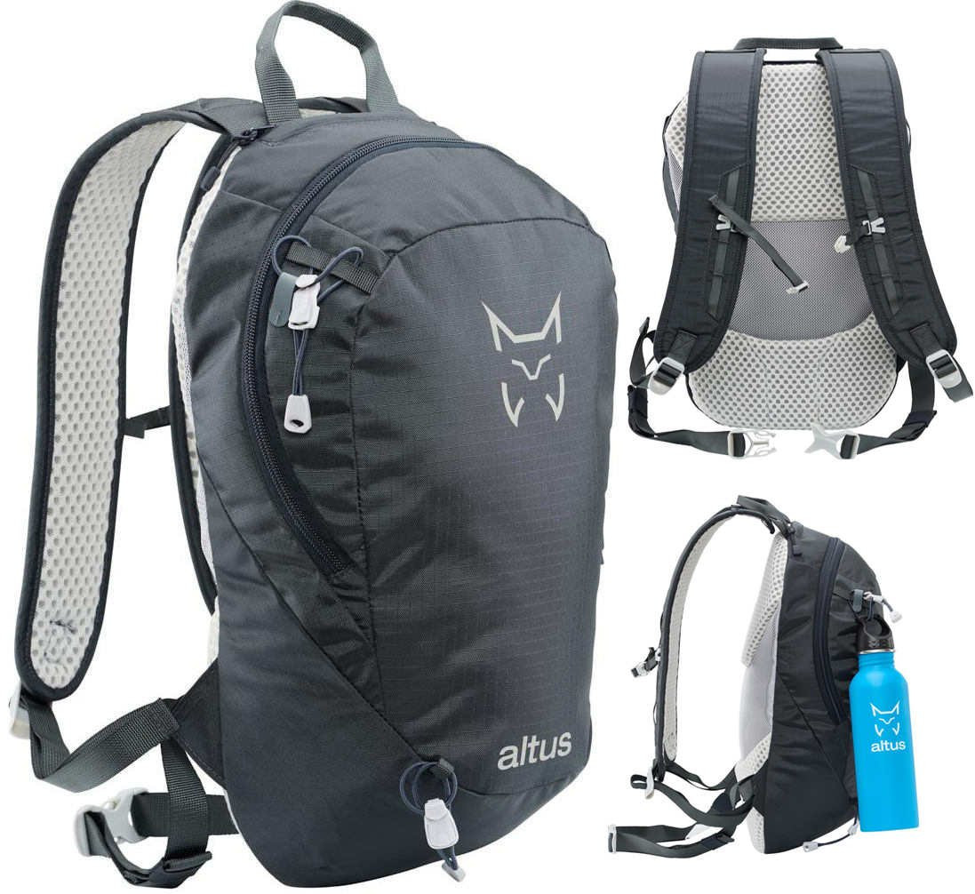 Esta mochila Altus destaca por su diseño compacto que se adapta al cuerpo, proporcionando estabilidad durante el movimiento y evitando rebotes mientras corres o caminas por terrenos irregulares.