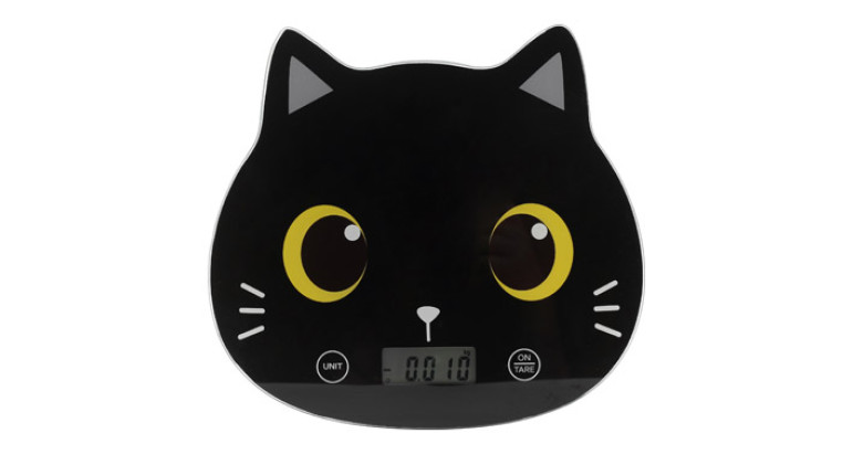 Balanza de cocina forma de gato, color negro. Medidas: 24 x 26 cm.