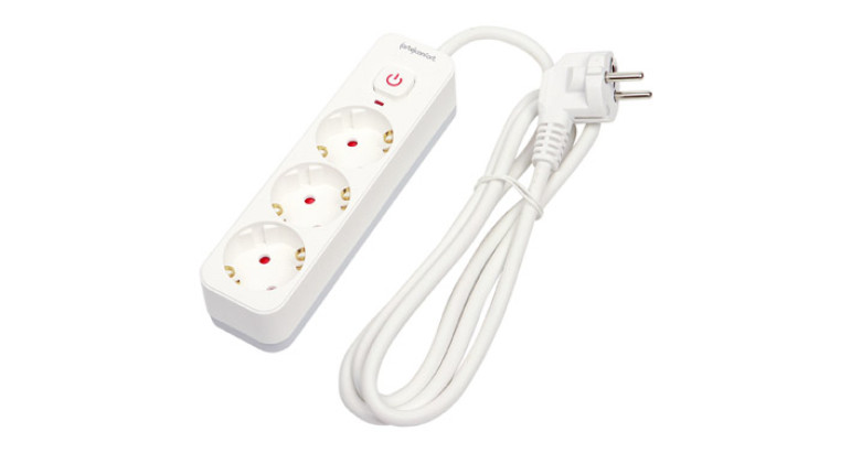Electricidad: Regleta estilo alemán Lines rectangular de tres orificios 15A 3G 1.0mm2 con cable 1,5M con interruptor cuadrado/blanco