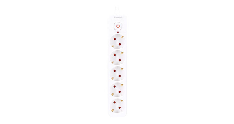 Electricidad: Regleta estilo alemán Lines cinco orificios rectangular 3G1,5mm2 5M con interruptor cuadrado/blanco gris 250V IP20