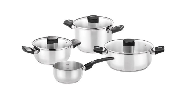 BATERIA INOX ELITE TAPA CRISTAL BAQUELITA 4 PIEZAS
