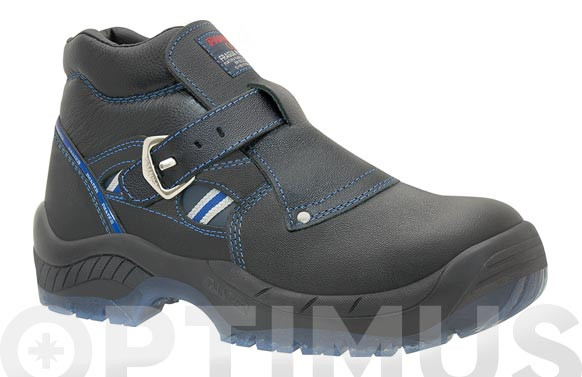 Piel flor natural. Puntera anti-impactos y plantilla anti-perforación no metálica. Suela bidensidad en PU/TPU que mejora el agarre, tracción, amortiguación y flexibilidad. Tecnología OPTIMAL SOLE. Reflectantes laterales y traseros 3M. Hebilla de desprendimiento rápido. Horma extra ancha.