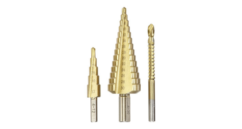 Juego de dos brocas escalonadas Ø 4-12 mm y 4-30 mm + broca fresa lima