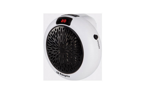Calefactor cerámico de enchufe. Potencia 600W. Display LED. Temporizador programable durante 12h. Calienta de forma rápida y fácil. Rotación de enchufe 360º. 2 velocidades. 12,5cm. Termostato ajustable. Temperatura de +15 a +32ºC.