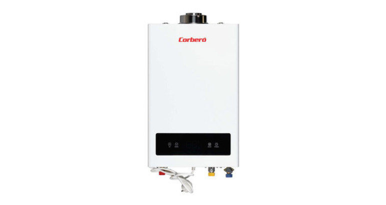 Calentador de gas Butano compacto y eficiente, con cámara de combustión estanca, encendido electrónico, control termostático y compatible con energía solar. Incluye display táctil, bloqueo infantil, modos Auto/ECO y kit de evacuación. Ofrece alto rendimiento (89 %), caudal de 11 l/min, bajo consumo eléctrico y clasificación energética A, garantizando seguridad, confort y eficiencia.