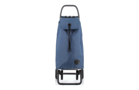 Carro compra 4 ruedas. Plegable Denim Petroleo. Chasis 4L. Gancho multifunción. Doble bolsillo interior, cierre con cordón, ojal en la solapa, bolsillo trasero con cremallera