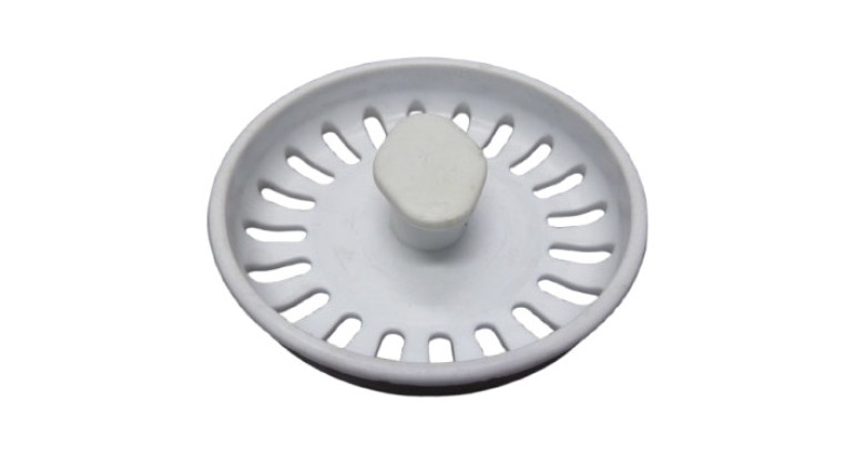 Tapón tipo cestilla de PVC blanco para fregadero. Presentado en blíster de cartón.