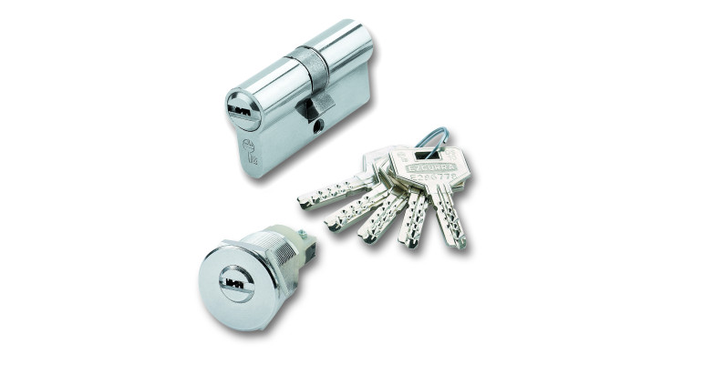 CILINDRO SEGURIDAD DS10 LEVA LARGA 30-40 MM, CROMO MATE, 5 LLAVES