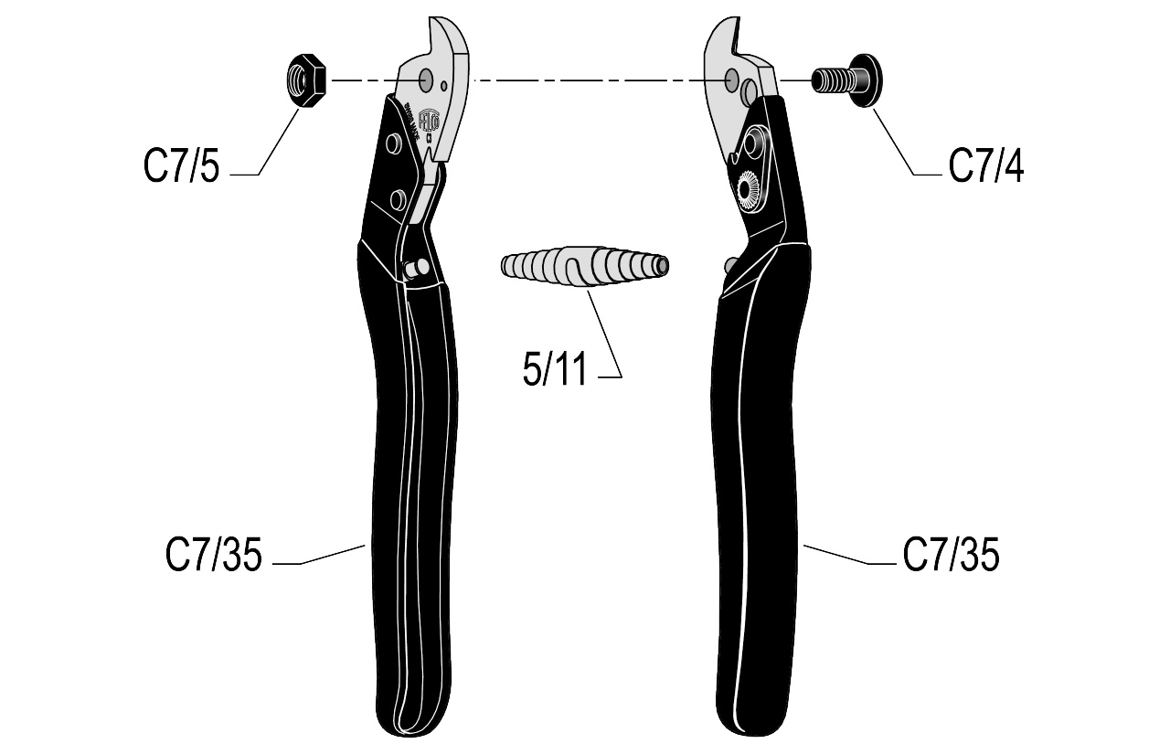 Cizalla Felco C3. Cizalla Felco especialmete diseñada con la colaboración de fabricantes de cables de acero destinados a la industria del neumático. Es capaza de cortar todo tipo de cable de acero de alta resistencia.