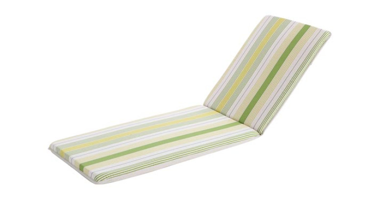 85% algodón + 15% poliéster, desenfundable, con tiras para atar. Una cara estampada a rayas, otra cara liso.192x56x4 cm. 2 colores: rayas/crudo