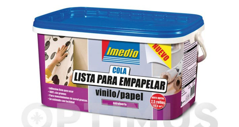 2,5kg. Cola para empapelar facilmente papel vinilo, con dorso de papelo textil, sobre superficies porosas y absorbentes como estucados, piedra, hormigon, cemento, yeso o madera. La cola es apta para papel pesado y tipos especiales de empapelado, como vinilo de espuma y papel fotografico