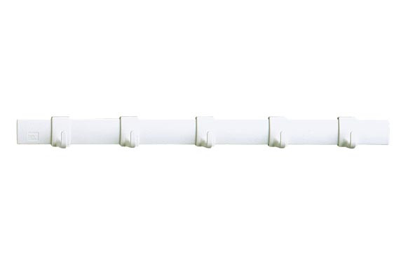 Plástico. Blanco. Ganchos móviles. Tornillos incluidos. Dimensiones: 28x350x25mm.