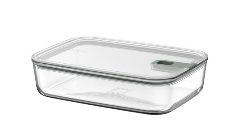 Vidrio. Easyclip 2250ml Menta. Medidas en cm: 27,8 largo, 19,8 ancho y 7 alto. A prueba de fugas, hermético y hermético a los aromas.