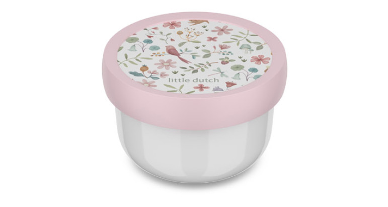 Caja de fruta a prueba de fugas y fácil de abrir por los niños. Se puede meter en el microondas sin la tapa. Incluye un tenedor. Fabricada en Países Bajos. Ø67 x 104 mm