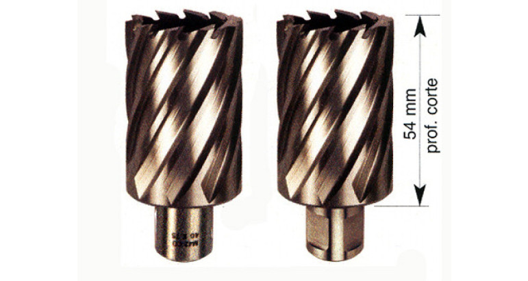 Coronas de corte Blue-Master, para taladro con base electromagnética. Calidad HSS-Co para aceros duros hasta 110 kg/mm2 de tenacidad máxima.