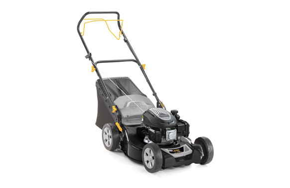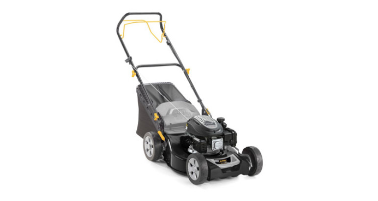 CORTACÉSPED A GASOLINA AUTOPROPULSADO. Motor STIGA de 4 tiempos de 139 cc, anchura de corte de 46 cm, chasis de acero. Para superficies máx de 1200 m².
