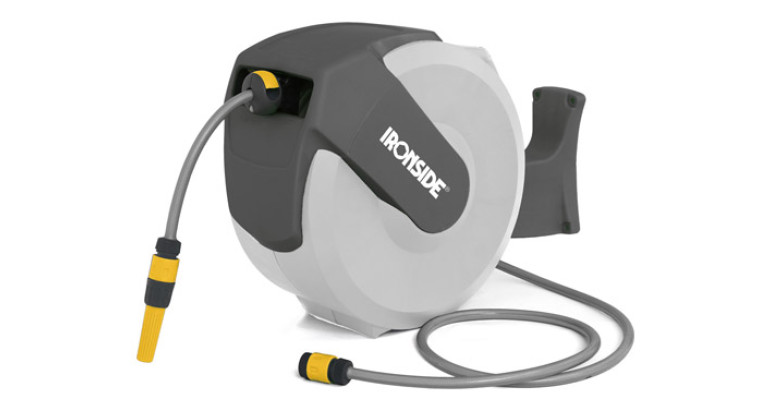ENROLLADOR MANGUERA PARED CON 20 M DE MANGUERA ½\" RETRACTIL CON MECANISMO DE BLOQUEO