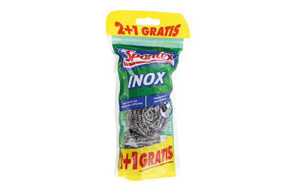 Estropajo acero Inoxidable reciclado. 2 bolas más 1 de regalo. Medidas: 6,5 x 6,5 x 4 cm. Color gris. Espirales de larga duracion. Muy eficaz con la superficie incrustada en parrillas, hornos y barbacoas.