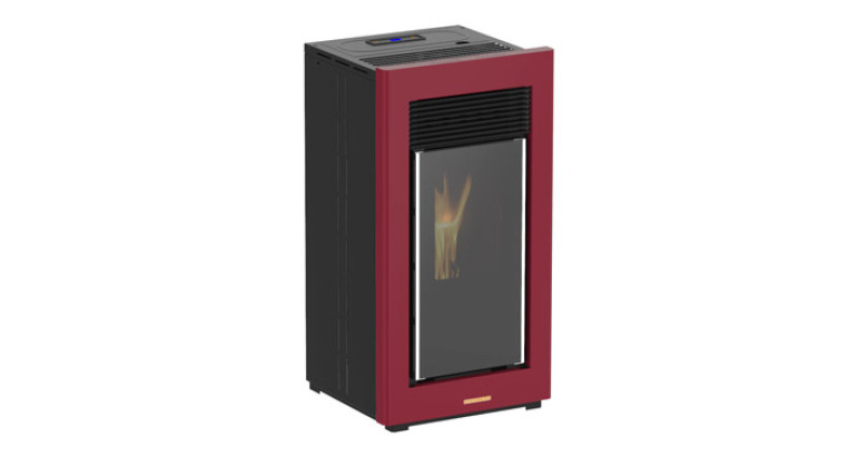 Estufa de pellets auto-limpiante de 11kw roja. Potencia termoquímica 11,7kw. Carga pellet con sistema anti-atascos tornillo estelar. Eficiencia: 88-93%. Depósito de 19kg. Consumo: 1-2,4 kg/h. Medidas: 100x49,6x56cm. Wi-fi opcional.