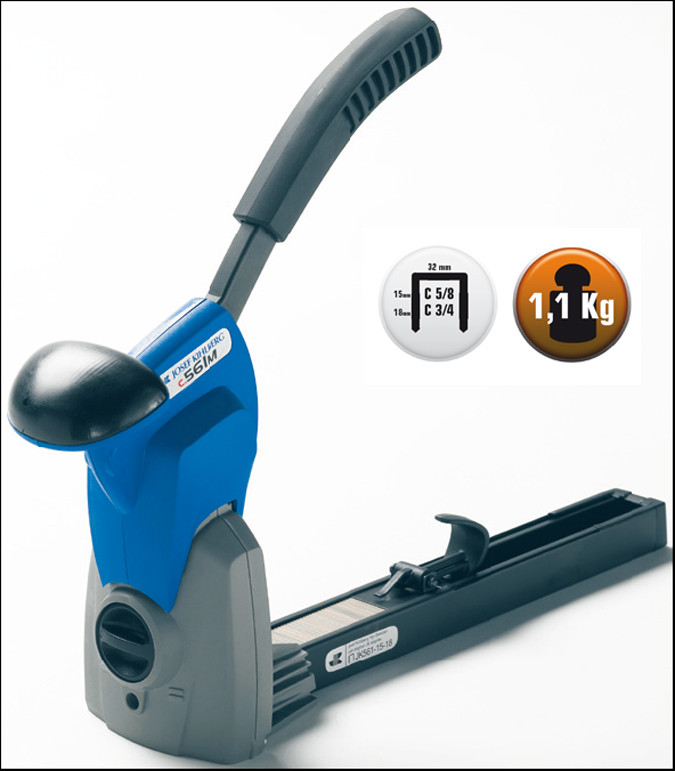 Grapadora para cerrar cajas de cartón ondulado, con funcionamiento manual. Grapadoras fabricadas en Suiza por Josef Kihlberg. La grapadora manual JK-C561 M está la herramienta necesaria para cerrar cajas de cartón de forma rápida, limpia y segura.
