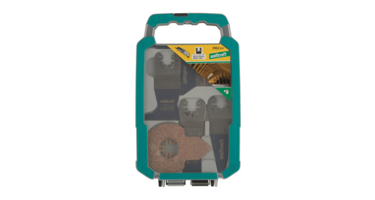 1 conjunto básico para multiherramienta \"PRO\". Especial para trabajos de renovación. Contenido: 1 hoja de sierra de inmersión, BiM, 22 mm. 1 hoja de sierra de inmersión, BiM, 65 mm. 1 rascador, HCS, tipo rígido, 52 mm. 1 rascador mini, 45 x 10 mm. 1 cortadora-lijadora, recubierto de carburo de tungsteno, ø 65 mm. 1 anillo adaptador para Bosch PMF 250 CES.