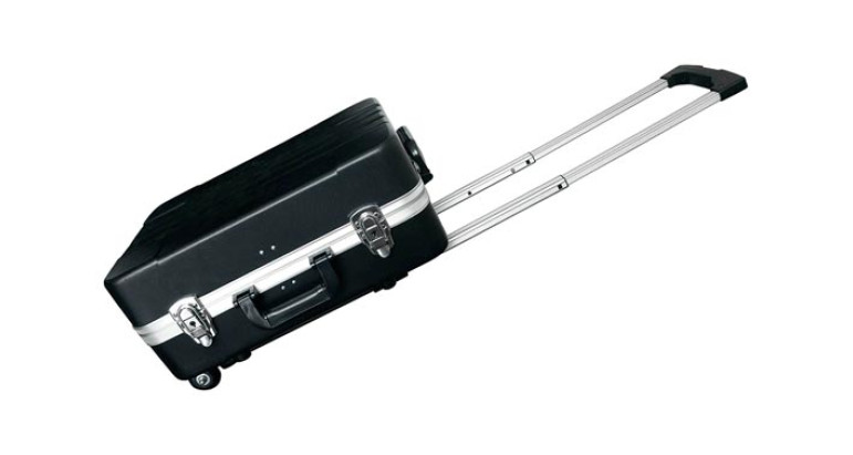 460 x 355 x 190 mm. Doble bandeja porta herramientas. Cierre con llave. Estructura de aluminio. Troley telescópico de dos posiciones. Asas en frontal y lateral