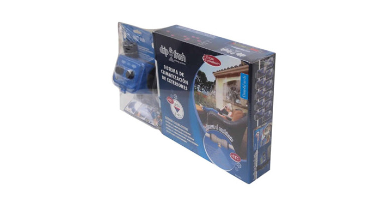 1 programador analógico (C5191).• 7 tes automáticas portatobera.• 1 adaptador automático a grifo RH 3/4” x 3/8”.• 1 tapón final automático portatobera.• 8 toberas de nebulización de latón.• 2 codos automáticos.• 15 grapas de sujeción.• 10 m. de tubería. Intalación sin necesidad de herramientas o aparatos aux. Compatibles con otros kits. Presión mínima recomendada 3,5 bar.