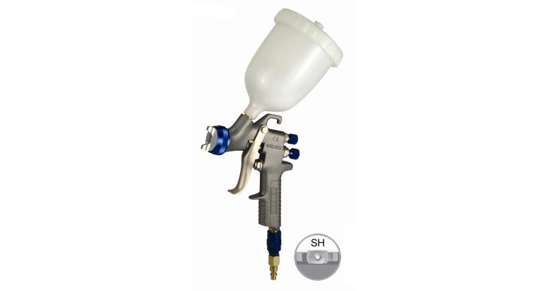 Pistola por gravedad 3500-Sh de KRIPXE. Pistola para retocar y pintar carrocerías, especialmente, pinturas de alto brillo en barnices SH (sistema alto brillo). El cuerpo de la pistola con recubrimiento especial de xylan, haciendola comoda y facil de limpiar por su bajo coeficiente de friccion y su alto poder anti-adherente.