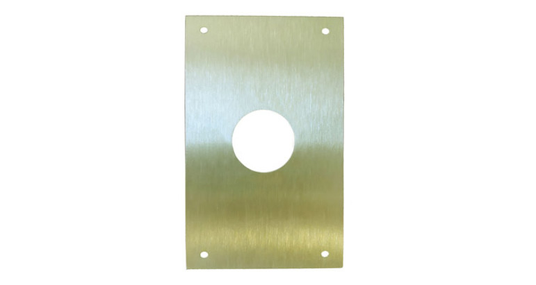 Placa para tapar posibles defectos y evitar ara¤azos en la puerta 80x120 mm. con bocallave redonda de 28Ø mm en laton mate de 0,6 mm. de grosor