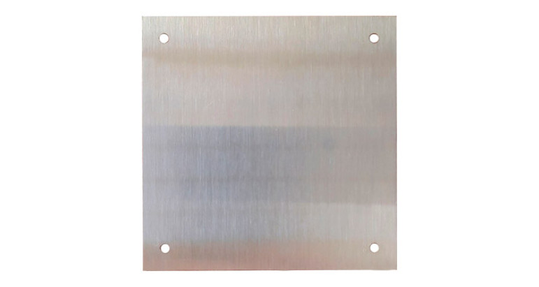 Placa para tapar posibles defectos y evitar ara¤azos en la puerta 80x80 mm. Ciega en acero inoxidable satinado de 0,6 mm. de grosor