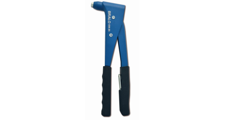 La remachadora BM-85 es ligera, fácil de usar y mantener, y ergonómica. Es una herramienta apropiada para obras, trabajos de mantenimiento, reparación y trabajos ligeros ya que posee una palanca intermedia con efecto multiplicador para reducir el esfuerzo del usuario. Peso: 670 gr, longitud: 265 mm, carrera: 6 mm. Campo de aplicación: de 2,5 a 5,0 mm.