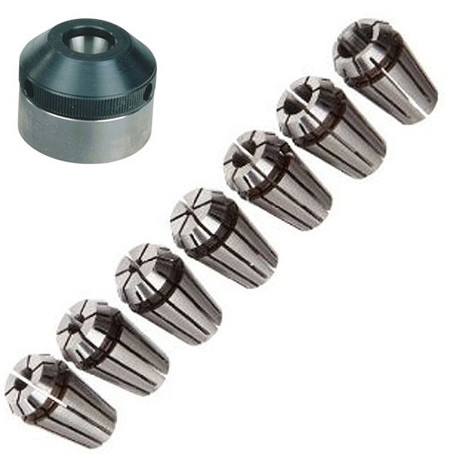 Set de pinzas estándar para el FD 150/E con referencia 24154, tienen una alta concentricidad. Pueden Reducirse hasta 0.5mm por debajo de su diámetro nominal. No se requieren tamaños intermedios. Cada una de ellas 2-2.5-3-4-5-6 y 7mm. Con tuerca de sujeción M 16x1.