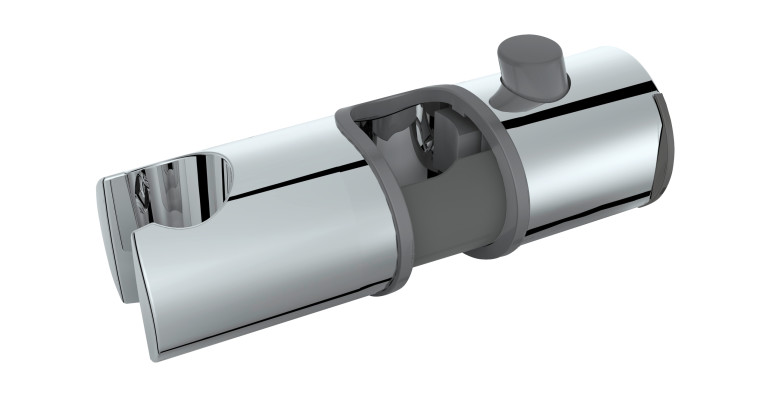 Soporte ajustable de cabezales para barras de ducha con 22/24/25mm de Ø. Universal. Fácil de colocar incluso sin desmontar la barra. Composición: ABS. Medidas: 12,3 ancho x 4,7 alto x largo 3,9 cm.