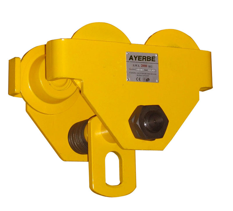 Soporte para plipasto Ayerbe AY-2000-CTM modelo carro manual. Para cargas máximas de hasta 2000 Kg y un perfil de IPN de 90-135 mm.