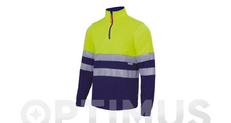 SUDADERA BICOLOR ALTA VISIBILIDAD CON CREMALLERAAMARILLO FLUOR / AZUL NAVY TALLA S