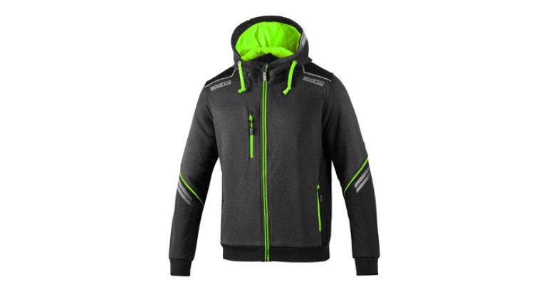 Peso: 280 gr/m². Composición: 80% algodón - 20% polyester. Especificaciones: Mangas reforzadas con inserciones antiabrasión con tiras reflectantes de alta visibilidad. Zonas de refuerzo en los hombros. Capucha ajustable integrada; interior en color a contraste.