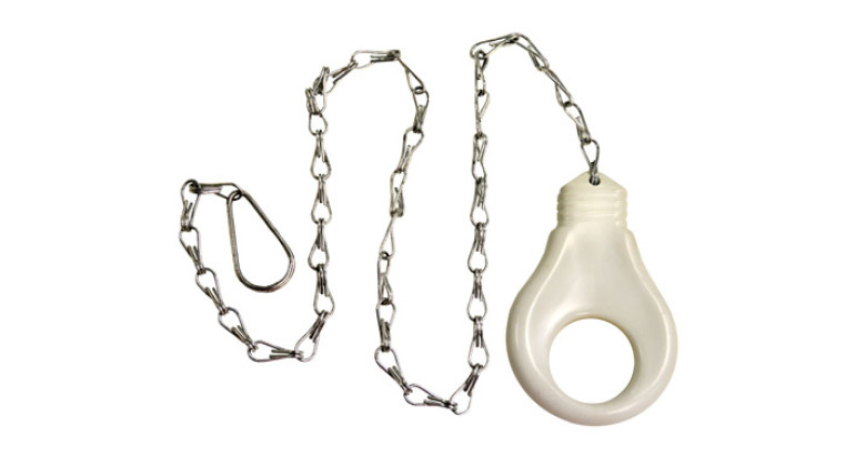 Tirador de metacrilato con cadena de metal para cisternas de descarga alta. Presentado en blíster.