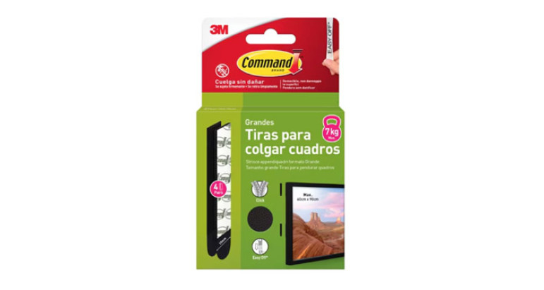Las tiras para colgar cuadros Command™ son una innovadora solución para colgar marcos y cuadros de manera segura y sin ocasionar daños. Se sujetan firmemente y se retiran limpiamente gracias a la tecnología adhesiva de 3M.