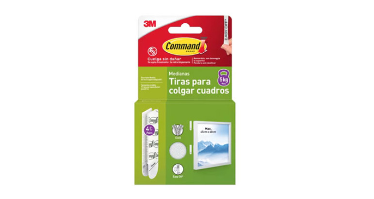 Las tiras para colgar cuadros Command™ son una innovadora solución para colgar marcos y cuadros de manera segura y sin ocasionar daños. Se sujetan firmemente y se retiran limpiamente gracias a la tecnología adhesiva de 3M.