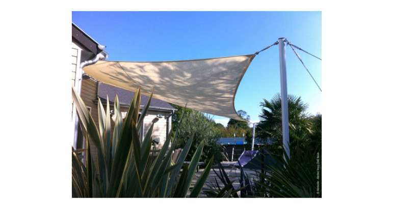 TOLDO VELA SOMBREO IMPERMEABLE TRIANGULAR. Fabricado en poliester. Medidas: 5X5X5 m. Color crudo.
